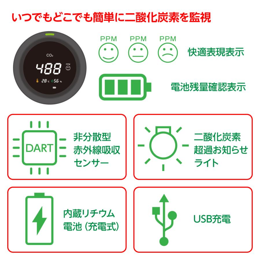 楽天市場 二酸化炭素濃度計 二酸化炭素計 空気質検知器 センサー 空気品質 Co2メーターモニター 高精度 多機能 Usb充電 検測機 濃度測定 リアルタイム監視 温 湿度表示付き Aragon アラゴン