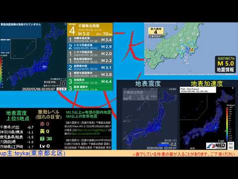 直播 深夜两点突发地震报道全过程 緊急地震速報 千葉県北西部m5 0 深さ70km 最大震度4 Wni 2020年5月6日01時57分頃 哔哩哔哩