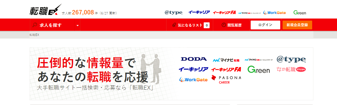 複数の転職サイトの求人をまとめて閲覧できるサイト 転職ex を徹底解説 転職求人サイト 転職エージェントを徹底紹介 転職サイト図鑑