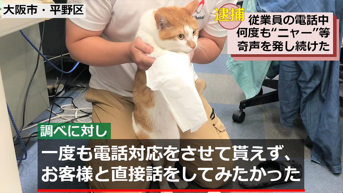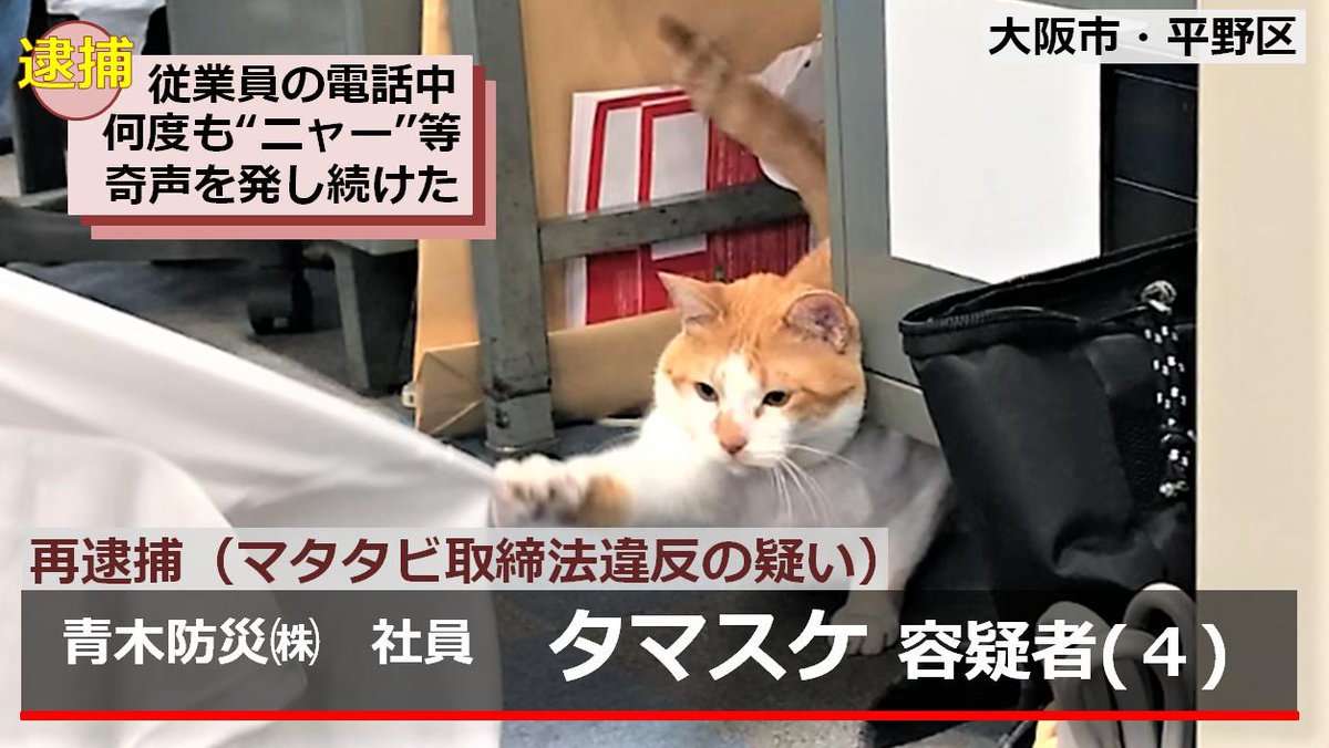 青木防災 にて電話応対中 ニャー と発し妨害した被害を受け同社広報課長であるタマスケ 4 氏を逮捕しました Togetter